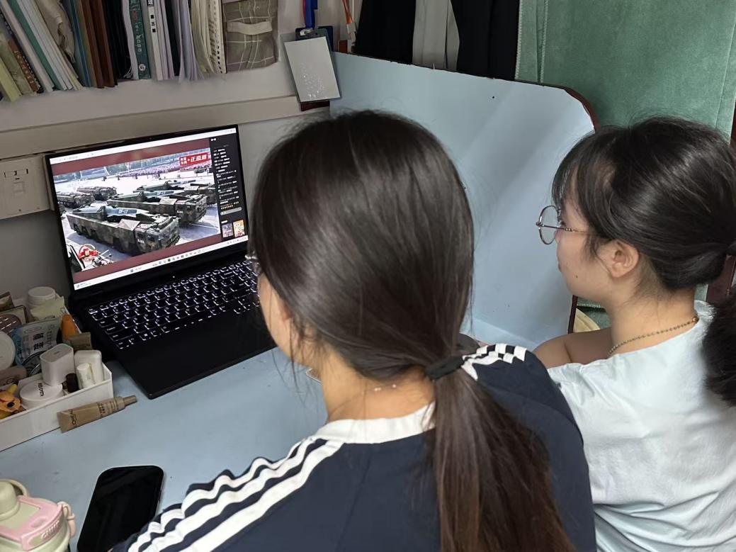 学生党员李佳琪表示,“受阅官兵身姿挺拔、步伐整齐,每一步都踏出磅礴气势,彰显着人民军队的钢铁意志。新型装备惊艳亮相,军事航天、网络空间等新质作战力量更是让人眼前一亮,这是我国国防实力飞跃的有力见证。这场阅兵,让我深知和平来之不易,也为祖国的日益强大感到无比自豪。”