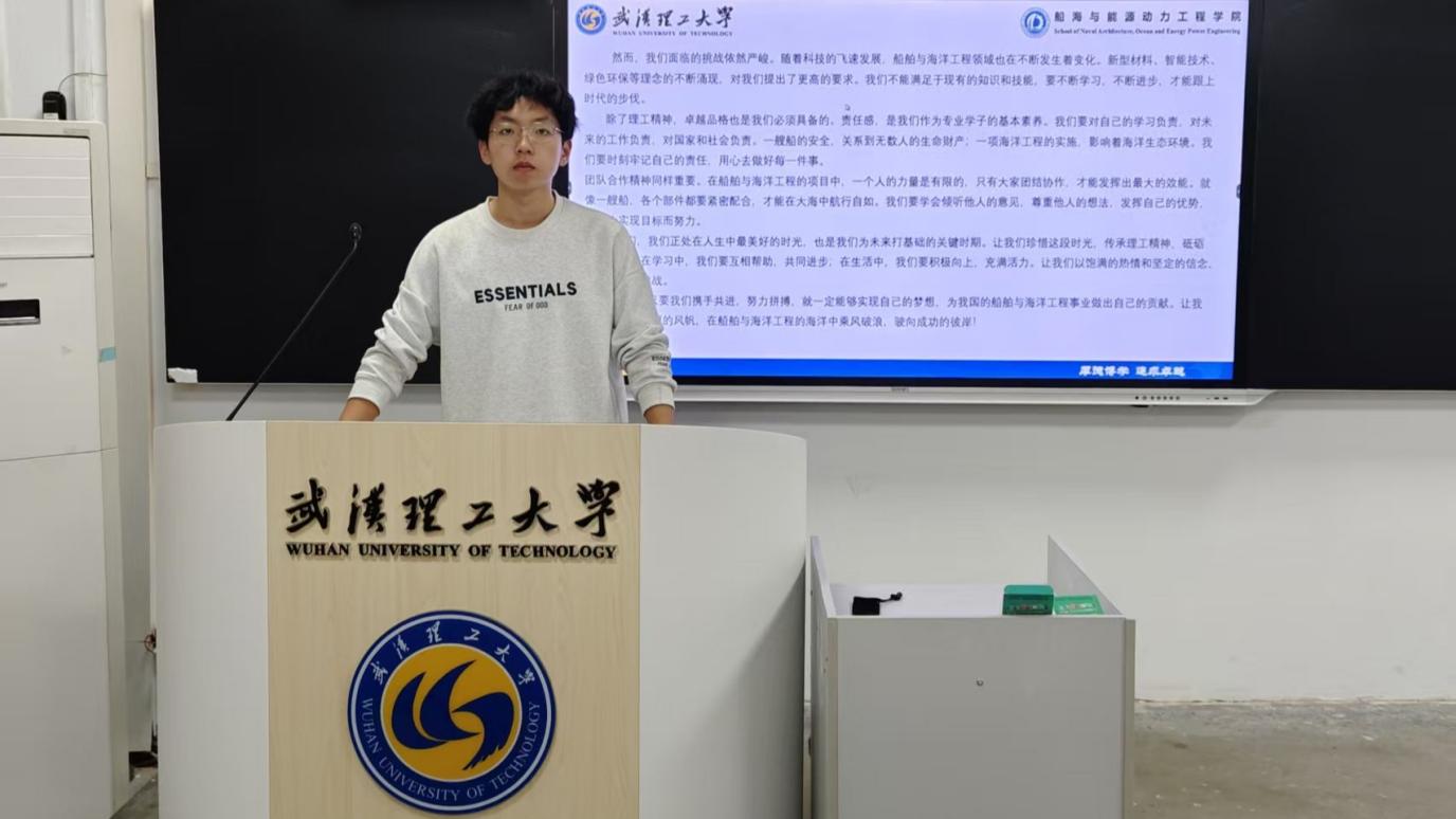 班会伊始,杨瑞欣以“何为理工精神”为切入点,通过播放精心制作的短视频,带领同学们回顾了理工科学家的科研事迹以及当代工程师在船舶与海洋工程领域突破技术壁垒的创新实践。视频结束后,他结合班级专业特点,提出理工精神的核心要义:严谨务实的科学态度、敢于突破的创新思维、攻坚克难的探索勇气、服务社会的责任担当,为整场班会奠定了理论基础与思想方向。