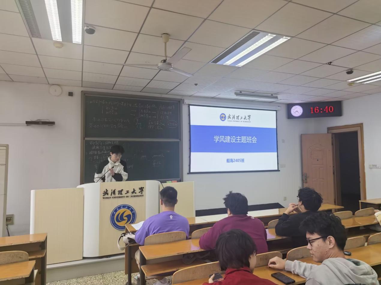 为夯实班级学习基础,引导新生践行学科素养,11月10日下午,学院船海2405班于航海楼602教室召开“学习理工精神,砥砺卓越品格”学风建设主题班会。班长徐靖锴主持,学习委员方沁稣召开,船海2405班全班同学参与。