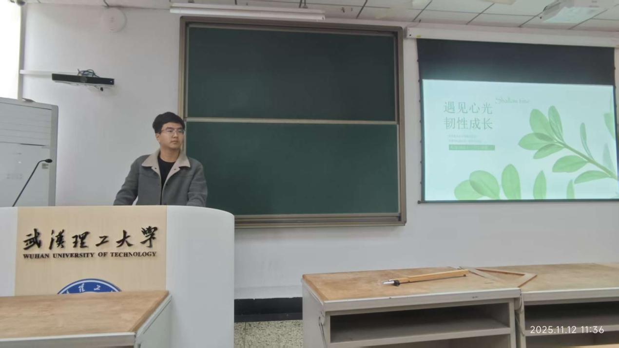 为帮助同学们缓解学业与生活压力,提升心理韧性与情绪调节能力,11月12日上午,学院船海2401班航海楼309教室举办“遇见心光,韧性成长”心理主题班会。心理委员邓瑞主持,船海2401全体同学参与此次心理班会。