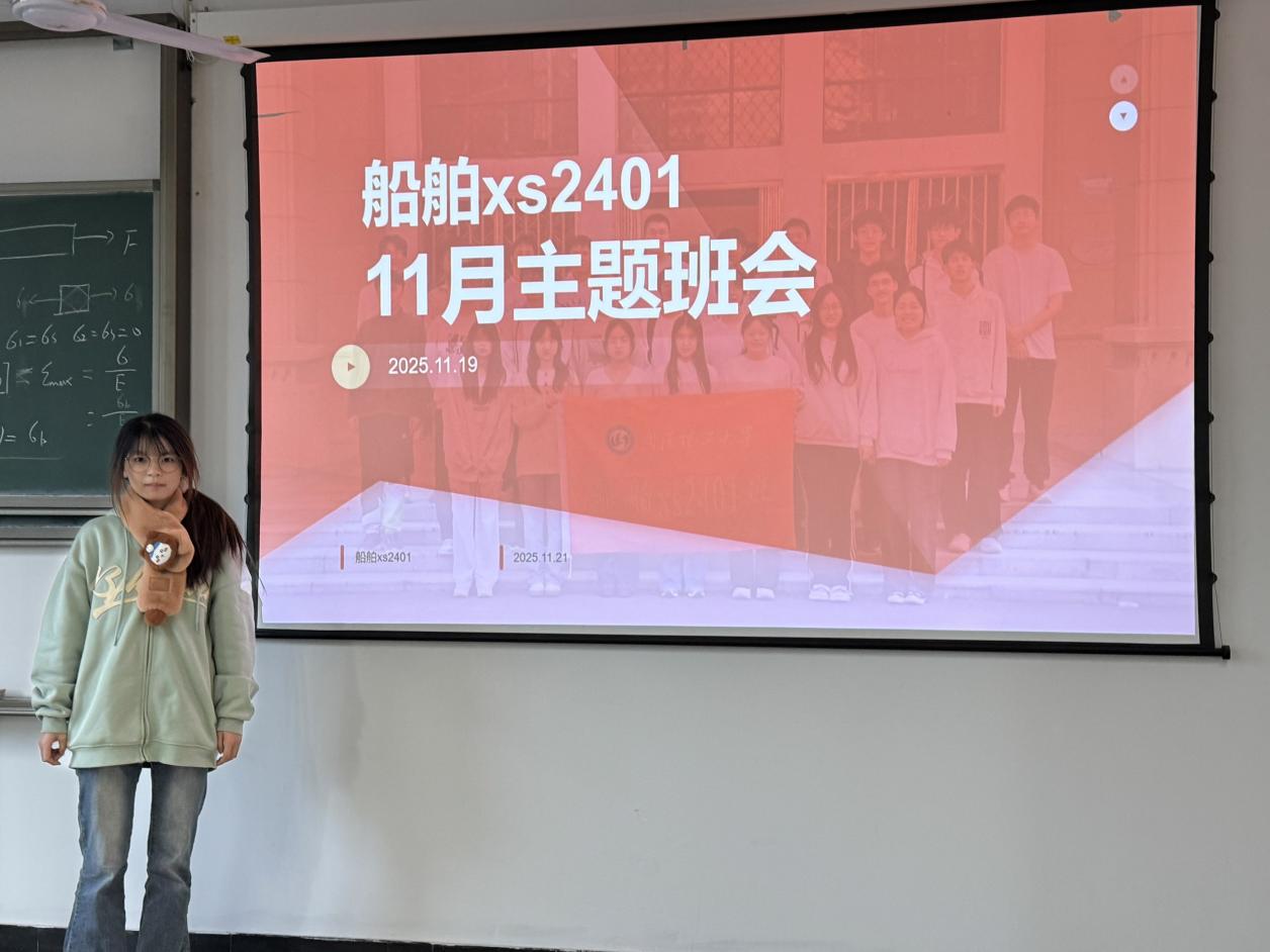 为强化安全意识、落实消防责任、培养日常自查习惯,11月19日下午,学院船舶xs2401班以消防安全为主题于航海楼404教室召开11月班会活动。心理委员程颖主持,船舶xs2401全体成员参加。