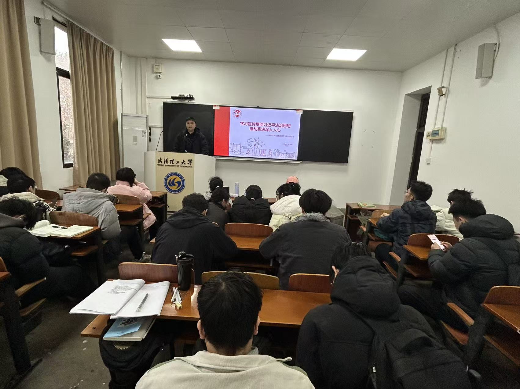 活动伊始,支部展开集中学习:宣讲和解读习近平法治思想、党的二十届四中全会精神及中央全面依法治国工作会议核心要义。之后结合校园贷陷阱、网络言论边界等身边真实案例,让抽象法律条文具象化。最后组织观看了宪法宣传短片,直观感受宪法的权威,明确“尊法是信仰、学法是责任、守法是底线、用法是能力”的行动准则。