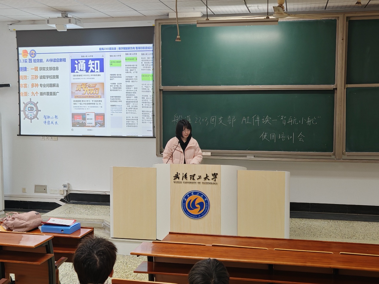 3月5日晚,船海2303团支部在航海楼103教室组织开展“AI规划——智航小舵“使用培训会。团支书尹璐向同学们全面展示了AI规划功能的应用场景与操作技巧,帮助大家借助智能工具优化学业发展路径。