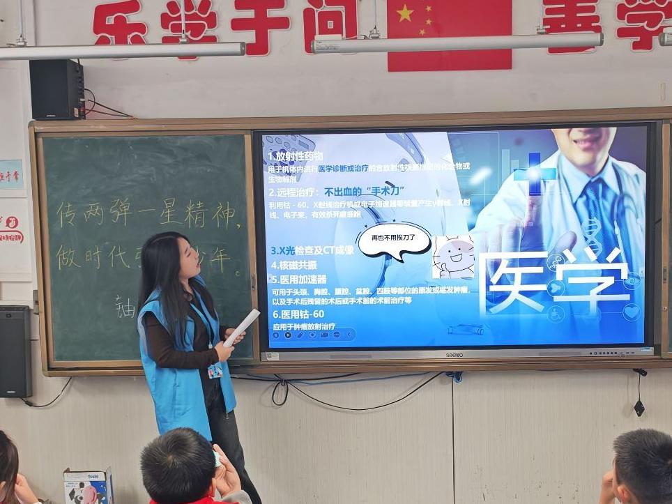 本次活动以“解码华龙一号,争做强国少年”为主题。宣讲环节中,志愿者以“国家名片”为切入点,用通俗语言讲述“华龙一号”从研发到走向世界的历程。同时,志愿者结合老一辈科研工作者的奋斗故事,阐释“强核报国、创新奉献”的核工业精神,让同学们明白自主创新背后的家国情怀。