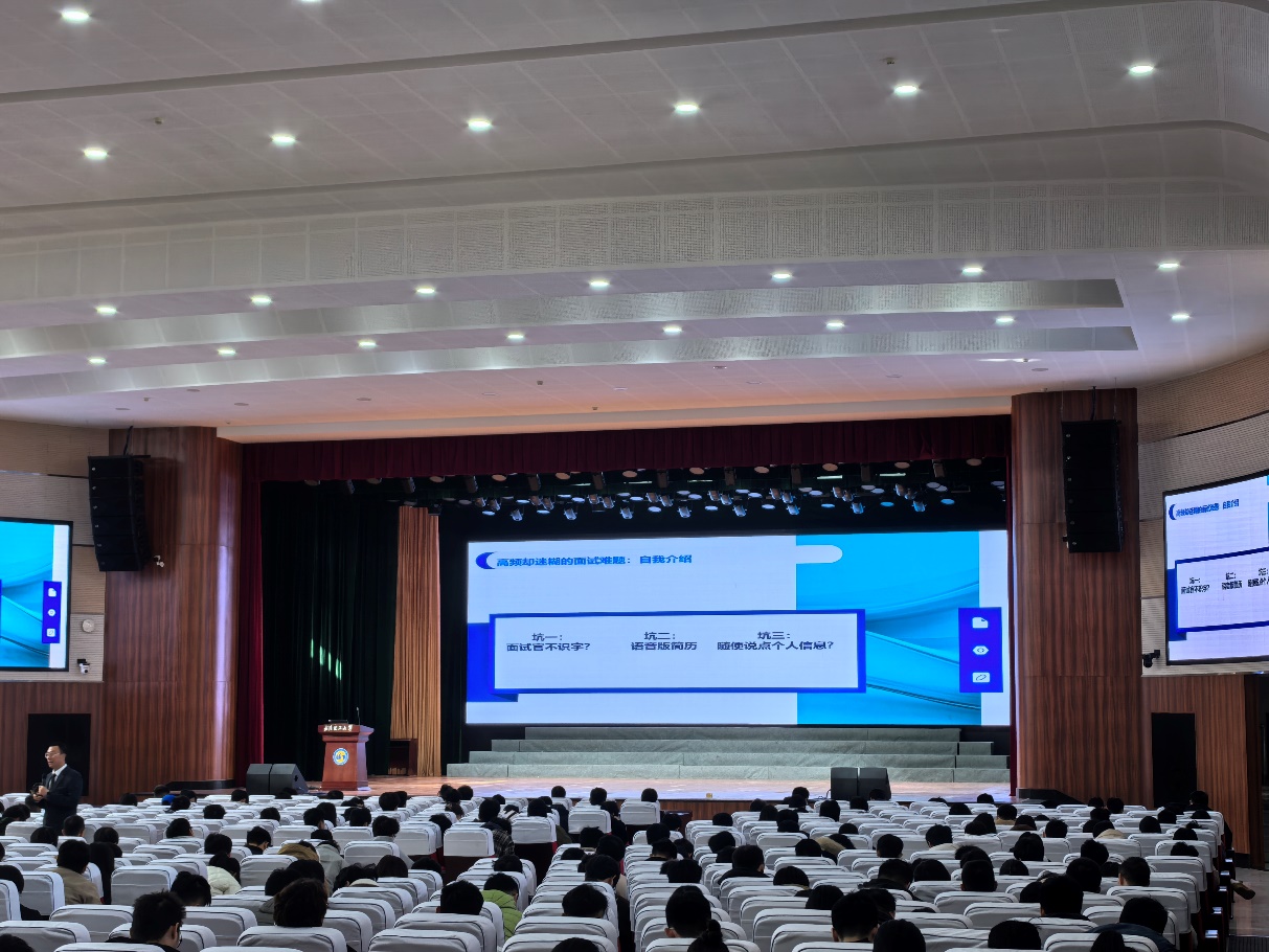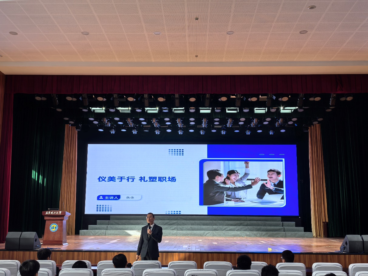 熊伟以“职面未来:从校园到职场的进阶之路”为主题,从职场礼仪与内在修养切入,深入阐释了“仪美于行,礼塑职场”的内涵。他强调,平和的心态、尊重的沟通方式与专业的个人形象,是求职过程中赢得认可的关键,并鼓励同学们注重综合素养的提升,做到求职能力与个人修养“内外兼修”。
