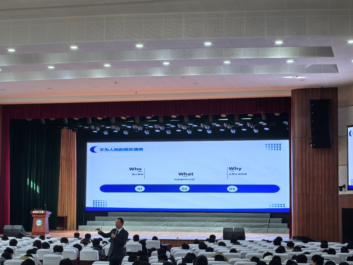 为切实提升研究生职业规划能力与求职竞争力,助力学子精准把握就业机遇,11月27日,船海与能源动力工程学院于余区大礼堂成功举办11月研学讲堂暨2025-2026学年第六期“径行职遂”就业指导训练营系列讲座。本次讲座特邀国家一级人力资源管理师、国家二级心理咨询师、企业人力资源总监、职业猎头,同时兼任宏志助航全国毕业生就业培训项目讲师、武汉理工特聘校级生涯导师的熊伟担任主讲人,为学院研究生带来了一场兼具实用性与指导性的求职专题分享。