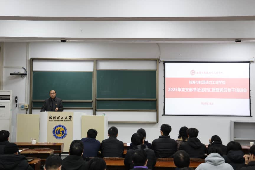 为全面加强基层党组织建设,压紧压实党建工作责任,科学检验各学生党支部年度工作成效,12月19日下午,船海与能源动力工程学院在余家头校区教学大楼222室召开2025年度学生党支部书记述职暨党员骨干培训会。学院正处级组织员蒋庆华,学院党委副书记、学生党总支书记李春梅,学院党委组织员张霞,学生党总支委员、各年级辅导员、全体党支部书记及支部委员参加会议。会议由24级研究生辅导员陈思雨主持。