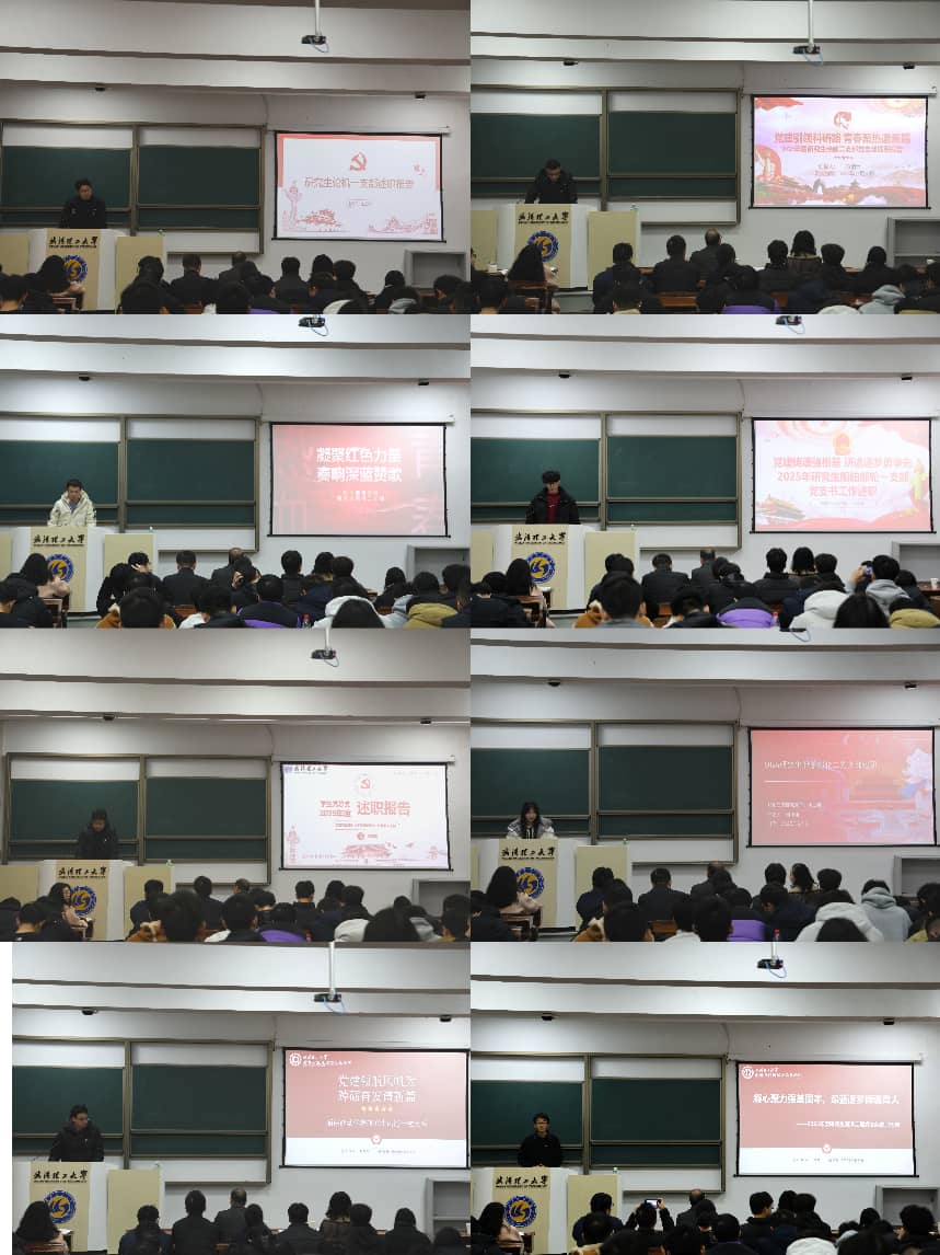 学院9个本科生党支部和14个研究生党支部代表依次进行现场述职。各支部紧扣年度中心任务,聚焦政治建设、思想引领、组织生活、党员教育管理、先锋模范作用发挥及特色创新等方面,系统汇报了一年来支部工作的主要举措、取得成效、存在不足及下一步工作思路。现场氛围庄重而热烈,充分展现了各党支部积极进取、务实担当的良好风貌。