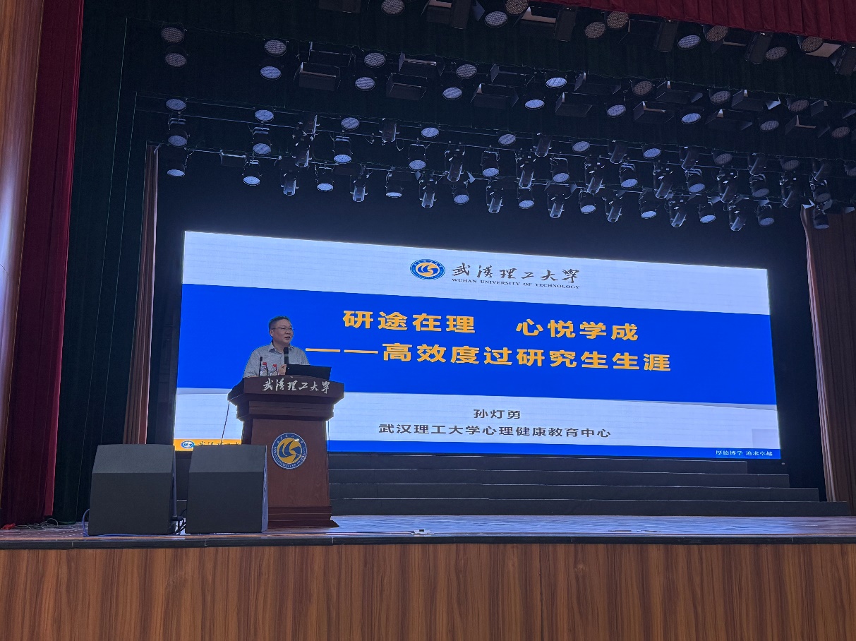 学校心理健康教育中心孙灯勇教授则以互动方式开场,深入解析了研究生新生与室友、同门、导师的相处之道,并特别指出情商在关系维护中发挥着“微妙而关键”的作用。孙老师着力破除“求助即软弱”的认知误区,强调主动寻求帮助是成熟的表现,鼓励新生善用家人、师友及学校心理咨询等支持系统,提升心理调适能力。