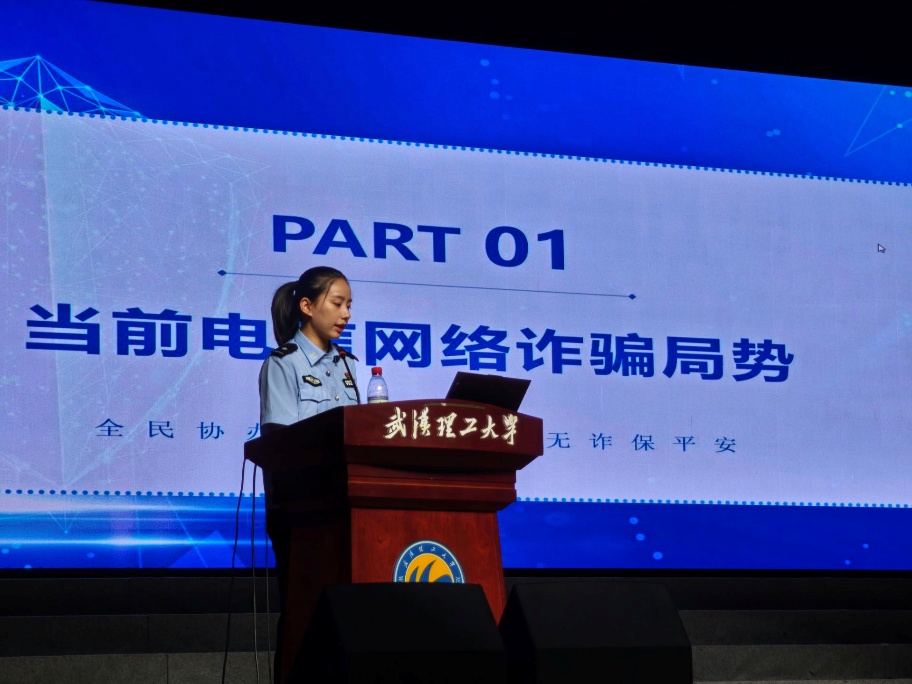 杨园街派出所武警官以“筑牢安全防线,护航研途新征程”为主题对新生开展安全法治教育。武警官结合真实案例与警示视频,深入剖析“杀猪盘”等校园高发诈骗形式,揭示诈骗分子的套路与心理操控手段,强调“不轻信、不转账、不泄露”的防范原则,引导新生从案例中汲取教训,呼吁大家树立正确的消费观念和牢固的防诈意识。