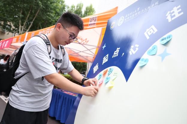 根据学科特色、学院文化,学院设计了别出心裁、充满趣味性的迎新活动:“新起点,心向往”签名墙活动,站在新起点,心向万千光,邀请新生写下大学寄语,汇聚成“心”,形成独特的入学纪念;“船行四海,扬帆起航”精准控制挑战赛,通过发条小船在模拟航道上航行,勇敢出发,探索未知,停靠区域对应不同奖项,寓教于乐,体验驾驭方向、驶向目标的趣味;一见倾“新”,定格与“理”的最美打卡照,送给每一位新生专属拍立得相片,记录新生入校第一刻的珍贵画面。期待每一艘新船,都能驶向最辽阔的海洋。